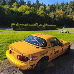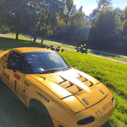 There's a memorial site near Blankenheim for the victims of the 2021 flood disaster. It's a strange place with freshly planted young trees along an asphalt path and a meadow. An inconspicuous, very sober memorial stone, perhaps half a dozen slate plaques commemorating individual victims, which I only notice as we reverse past the trees.