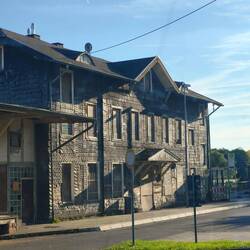 Der alte Bahnhof außerhalb ist ein anderer Gedächtnisort am Ende der Straße. Ein Stück weiter, zwischen Weyrer Wald und Urfttal finden wir einen Platz für die Nacht. Die Temperatur soll wieder fallen, aber heute haben wir Strom und eine heiße Tasse Tee zur Nacht, ein bisschen Standheizung am Abend.