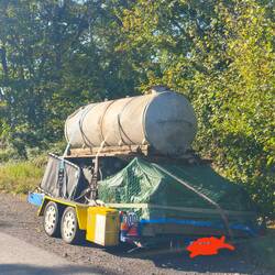 Einer steht vielleicht ein Stück weiter den Berg runter auf einem Parkplatz. Verlassen. Ein stiller Sieger. Noch ein Stück zurück hat einer seinen Anhänger platziert, wie es scheint ein Mix zwischen Hausrat und den Resten von einem Bauernhof.