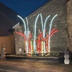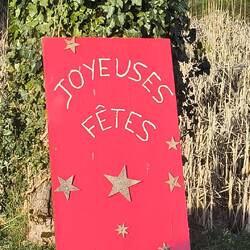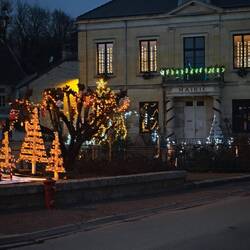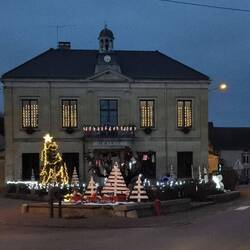 "Ici on ecrit votre histoire". Hier wird unsere Geschichte geschrieben, steht an einem alten Haus. Vor der Mairie, dem Haus des Bürgermeisters, eine bunt blinkende Weihnachtsgeschichte. Nicht die der Bibel, eher der Phantasie von Geschichtenerzählern entsprungen.