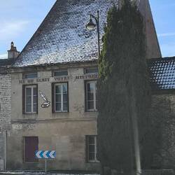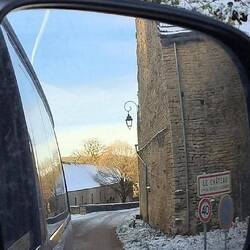 The old Château Bussy-Rabutin, hidden behind walls where the snow of the previous night lingers. We drive along small roads between fields, through small villages with shadows filled with ice, a dangerous bend, a steep slope, an intersection below, I try to drive carefully downhill without slipping. Sweat on my forehead, we stop briefly, the way is clear.