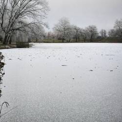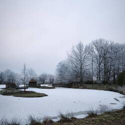 The temperatures remain above freezing all day, which is visibly changing the landscape, so that we see icy trees alongside green fields.