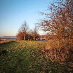 Hilde is surprisingly quiet today. No barking at goodbyes, and she lies quietly in the back of the van during the drive to the area around Dörnberg, where we're spending the night. After such an eventful week, we need the peace and quiet of our blue van. On the other hand, it's also becoming increasingly difficult to leave, and perhaps Hilde is feeling a little wistful.