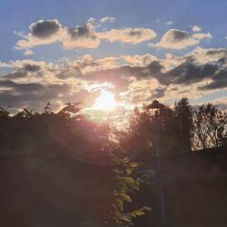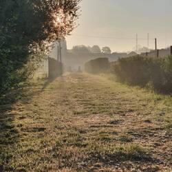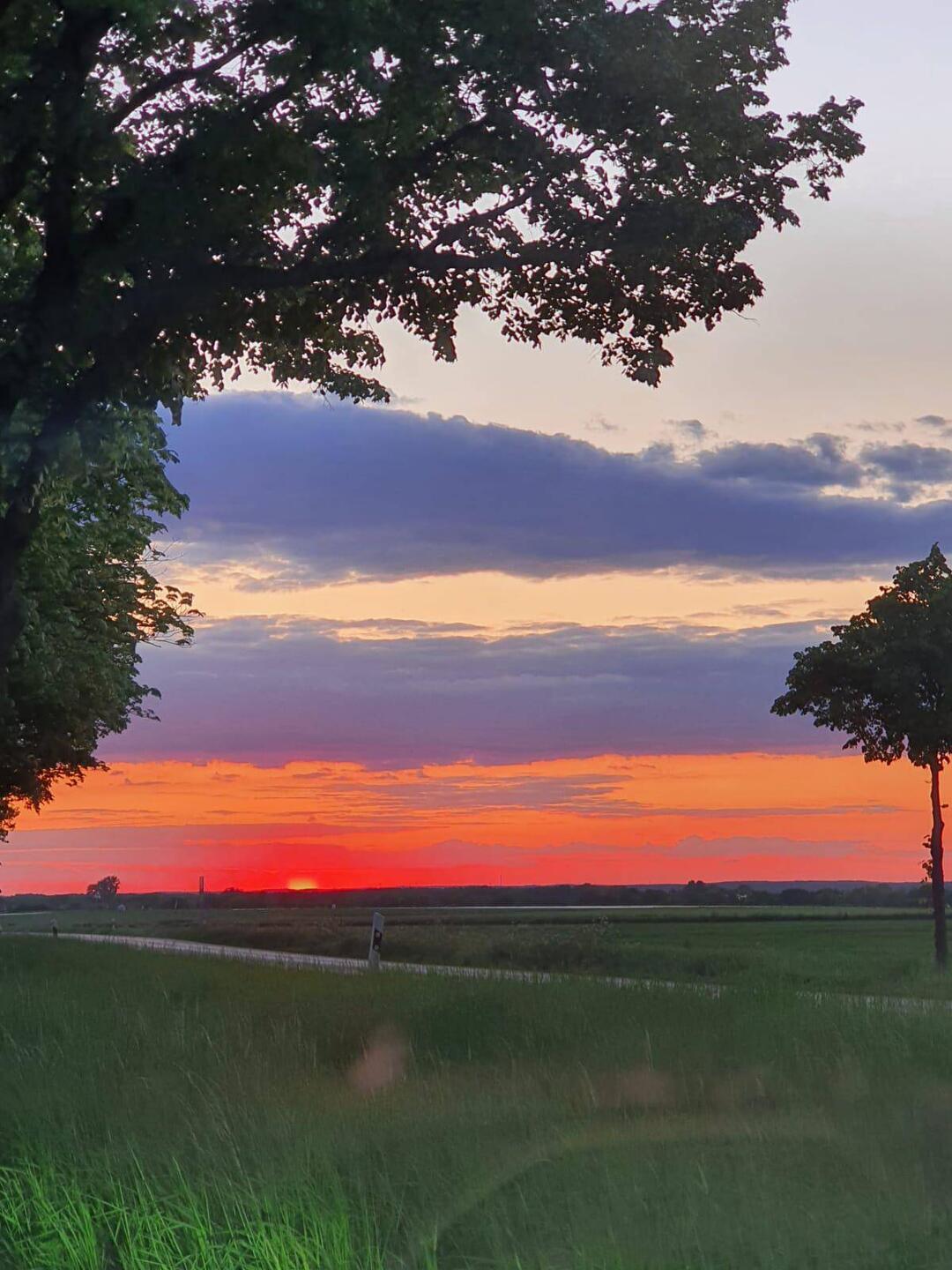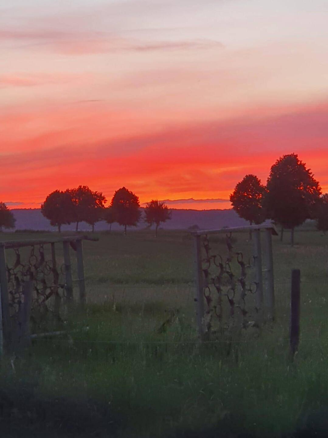 Für uns ist das Wasser absolut kostbar, weil ich direkt vom Hahn zapfen kann, ohne dass das Wasser durch den Gummischlauch läuft. An einer Seite ein großer Bauernhof, neben uns Wiesen mit einem schwarzen Pferd, einige Häuser drum herum. Vorne, ein Stück entfernt, die gut befahrene Landstraße. Und ein Morgen, der grau beginnt, nachdem die Sonne schön untergegangen ist.