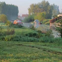 Dass ich mich nicht mehr gut zu Dingen hinunterbeugen kann, die auf dem Boden liegen, um die Hilfe eines anderen Menschen bitten zu müssen. Sie habe es gerne getan, ich bedanke mich herzlich. In Wienhausen fahren wir ans alte Allerwehr, ein Stück flussaufwärts liegt der Campingplatz, auf dem liebe Menschen übernachten, die wir vor drei Jahren in Spanien getroffen haben, an einem wunderschönen Platz.