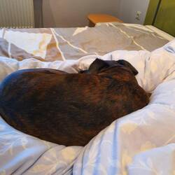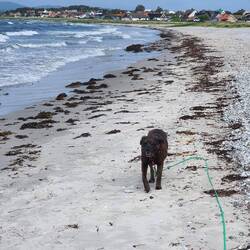 Frei laufen. Du siehst die Begeisterung in Hilde's Gesicht, die mit der Nase am Boden über den Strand schlängelt, der voller Gerüche ist. Gut, denke ich mir, das mit den Steinen ist zwar blöd, aber ein, zwei Strandbesuche pro Tag dürften schon drin sein. Da waren wir noch nicht in Étretat gewesen.