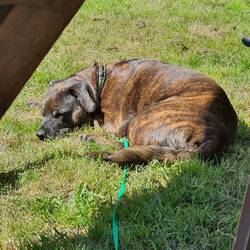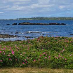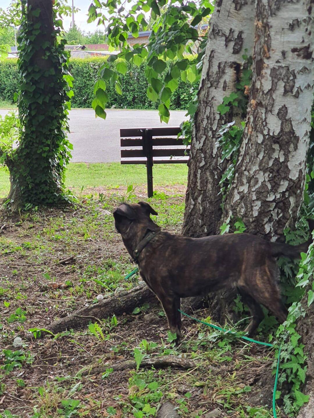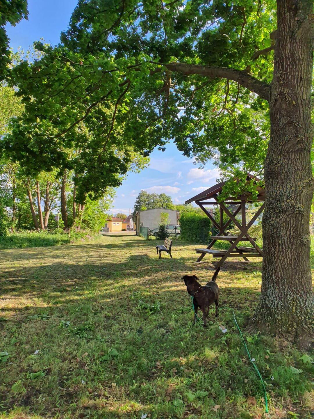 Die Orte, die Landschaft, Häuser, Wiesen und das Meer bieten viel fürs Auge, aber wenig für Hilde, um die ich mich jetzt erstmal kümmern muss. So kommen wir zu diesem kleinen Rastplatz mit Bänken unter den Bäumen und reichlich Wiese, um zu schnüffeln.