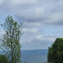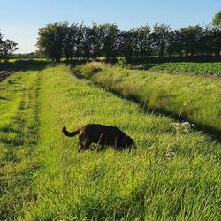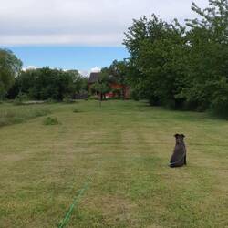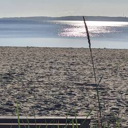 Aber Hilde ist zufrieden, abends und morgens für den schnellen Schritt im eine entlegene Ecke, der richtige Spaziergang findet oben im ausgetretenen Gras neben der Straße statt. Dann kommt die Sonne raus und der blaue Himmel schlägt sich übers Wasser, dessen Wellen unruhiger werden und kleine Schaumkronen tragen können.