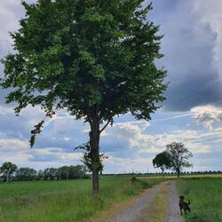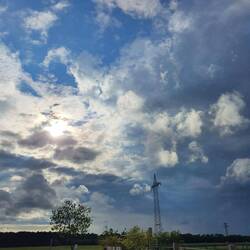 Über Nacht besuchen wir die Tochter Family, wo wir an der Pferdekoppel den Tag über stehen, und die Weite des Himmels um uns haben. Am Vormittag regnet es auf das trockene Land, und noch während die Pfützen verschwinden, kommt die Sonne raus. Zum Glück bleibt der leichte Wind kühl, in dem die Fliegen tanzen.