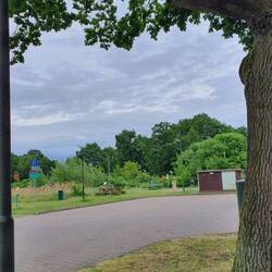 In Falkenberg bietet die Firma Engelsons einen kostenlosen Stellplatz an, der gut besucht ist. Obwohl es nur Schotter gibt, sitzen schwedische Freunde zwischen ihren Fahrzeugen im Gespräch, während ihr Hund sich manchmal selbstständig zu machen versucht. Am Ende des Platzes zwischen abgestellten Werkteilen hat ein Möwenpaar sein Nest gut verborgen, greift uns aber tieffliegend an, sodass wir uns trollen.