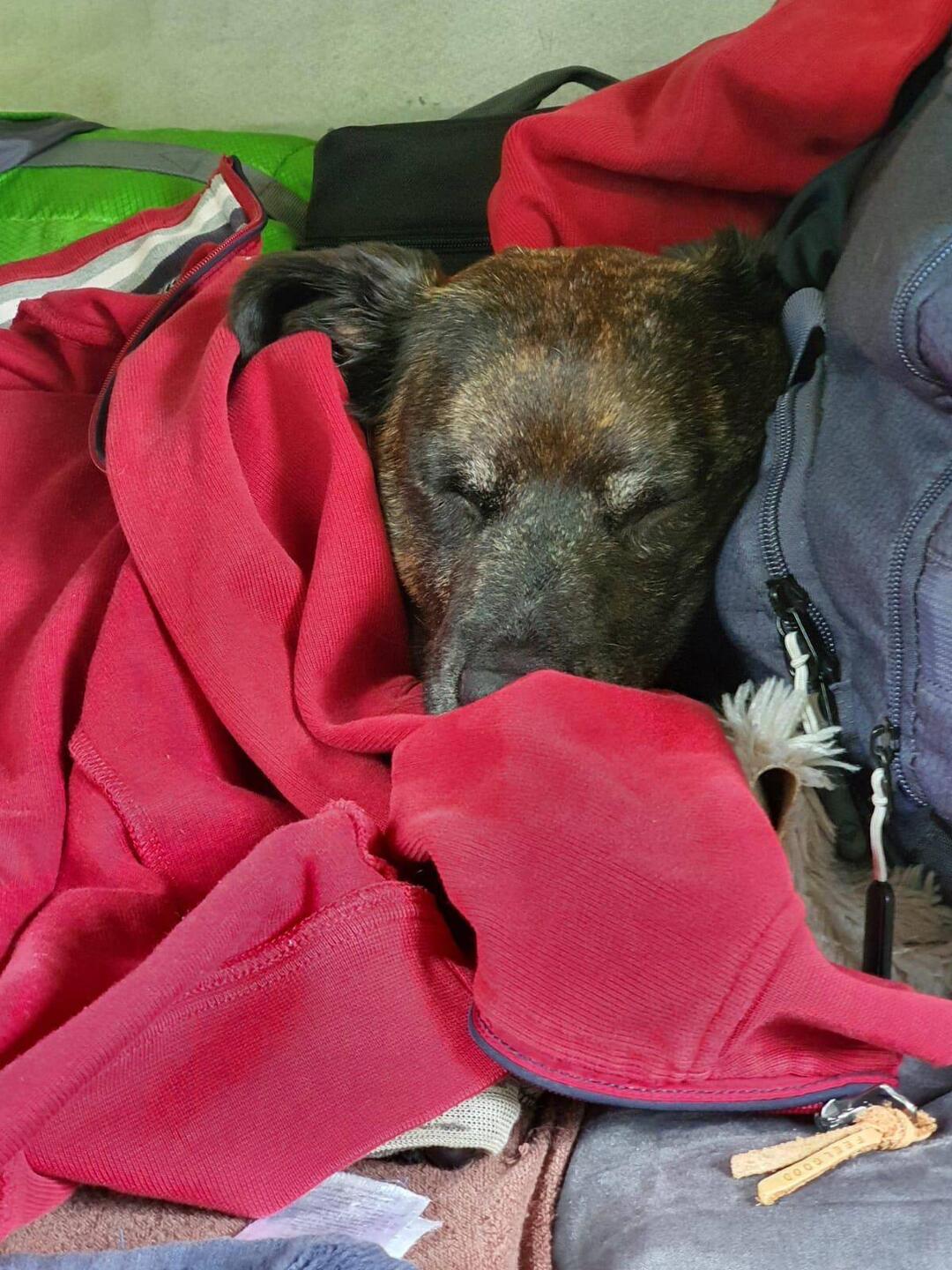 Sie werden lange nach Südamerika gehen, ich freue mich auf ihre Bilder, ihre Geschichten, ihre Sicht der Dinge. Und wie schön, ihnen nochmal begegnet zu sein. Es hat wieder angefangen zu regnen. Wir sind zum Parkplatz vom Schwimmbad in Nienhagen gefahren, wo es auch einen kostenlosen Stellplatz im Grünen gibt. Hilde hat sich hinten im Bus eingerollt, ich habe meine Jacke über sie gelegt, jetzt ist sie in ihrer Höhle.