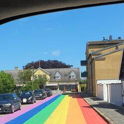 Früh genug, denn nach dem Blick am Ortsende über die Kühe hinweg nach Halmstad, komme ich dort in ein samstäglich, lautes Stadtrandbild just hinter der Autobahn auf einem Parkplatz, wo ich eigentlich mit Hilde spazieren wollte. Ich wusste gar nicht mehr, wie lärmend Menschen sein können. Laute Motorräder kreisen um eine Tankstelle, Kinder schreien in einem Tunnel, ein Lautsprecher dröhnt vom Dach eines Autos. Hau ab, hau ab!