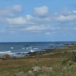 Oben an den Treppen zu den Klippen von Sotteville - sur - Mer komme ich mit Anna ins Gespräch, die hier ihre Tochter absetzt, die sie aus England besuchen gekommen ist. Anna lebt hier in der Gegend, nachdem sie schon südlicher in Frankreich gewohnt hat. Sie ist 84 Jahre alt und überlegt, sich nochmal zu verändern. Zwischen Brüssel, England und irgendwo hier sind ihre Überlegungen, auf jeden Fall möchte sie ihren Wohnraum verkleinern. Ich bin beeindruckt. Ja, in einer anderen Weise als ich, sei auch sie ihr Leben lang unterwegs gewesen. Wir verabschieden uns herzlich voneinander. Und lachen, nein, für die Treppen sind wir einfach zu alt.