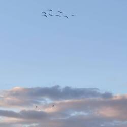 Mit dem Enkel bin ich auf der Suche nach den interessanten Ereignissen auf den Feldern, und da ist gerade richtig was los. Der Himmel gibt auch sein Bestes, und wenn dann noch Vogelflug dazu kommt, dann wird die Welt farbig und lebhaft.