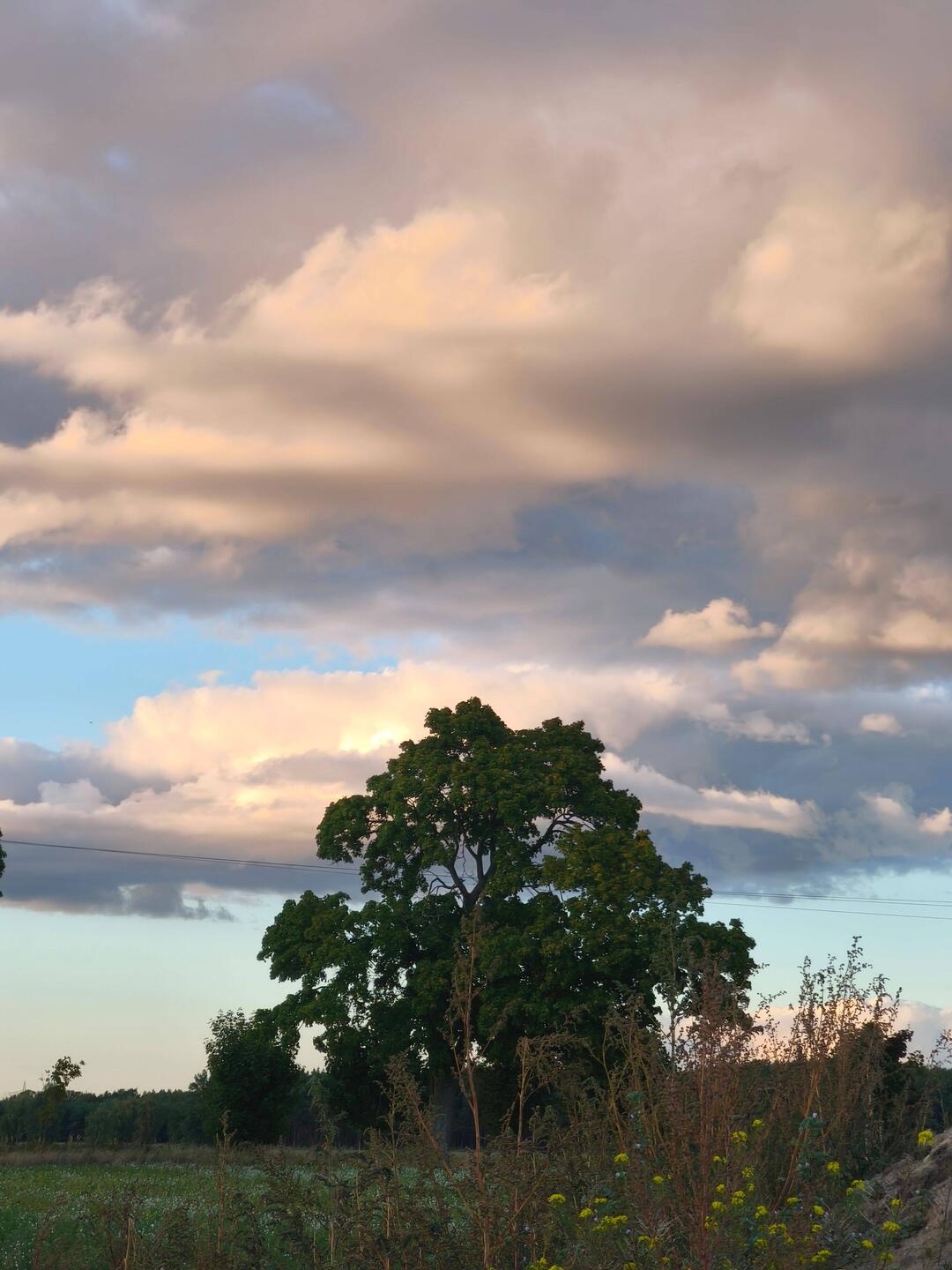 By the Weser River, we find a bench for picking up food, a field path with mice, meadows with signs of cows that are currently absent. And not far from Sababurg, a lonely tree rises high, while a young hiker drinks water and wipes the sweat from his brow.