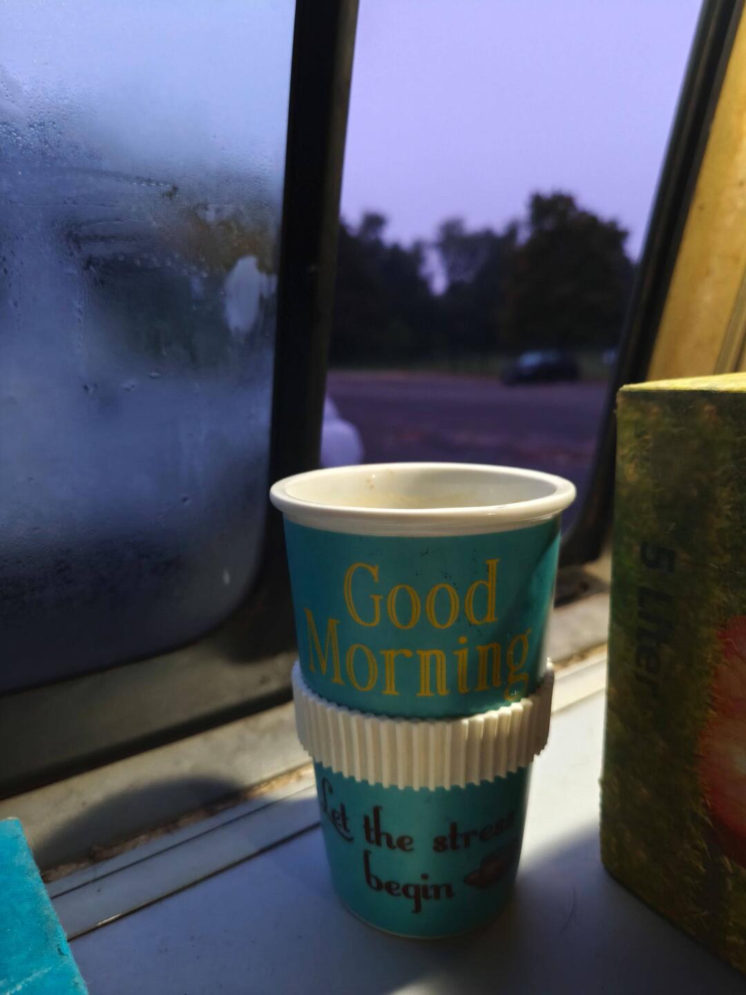 The rain was dripping nonstop, Hilde was curled up on her travel bag, and I'd already prepared the bus for the night. I wouldn't want to spend the night here, so close to the highway exit, but if the rain stops by 10 p.m., I'll drive to our more pleasant city parking lot with a bit of streetlight.