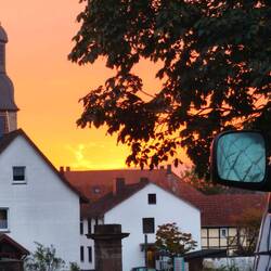 The wallflowers are reddened, in Oberlistingen, the church from 1821 greets us, and in Breuna, a street lined with half-timbered houses, that leans forward. One church in the village is in Zierenberg, the other in Hofgeismar, the tree near Breuna.