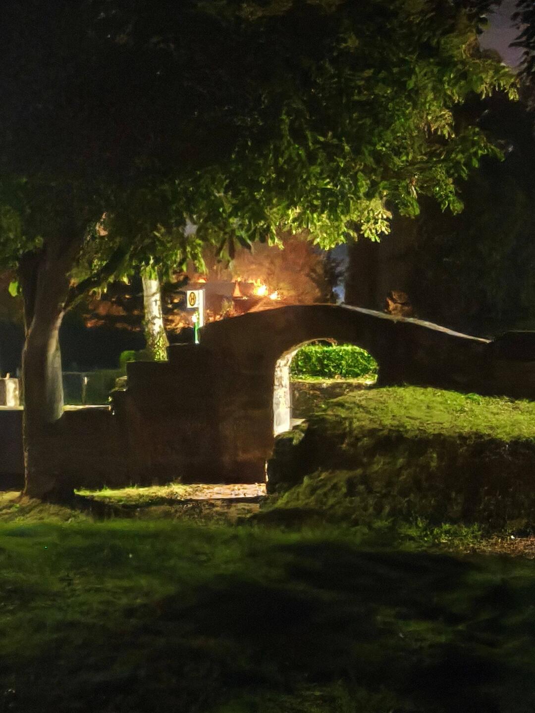 For suddenly it has become warm. Fifteen degrees, I change into shorts, which might be a bit chilly again for the evening. But we're only going outside for a short while for Hilde to get some fresh air. The campsite is dark between the sports fields, the lights are on in the inn, and guests have been chatting on the balcony. Now it's quiet, the curtains are drawn.