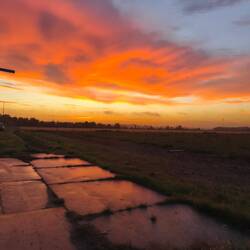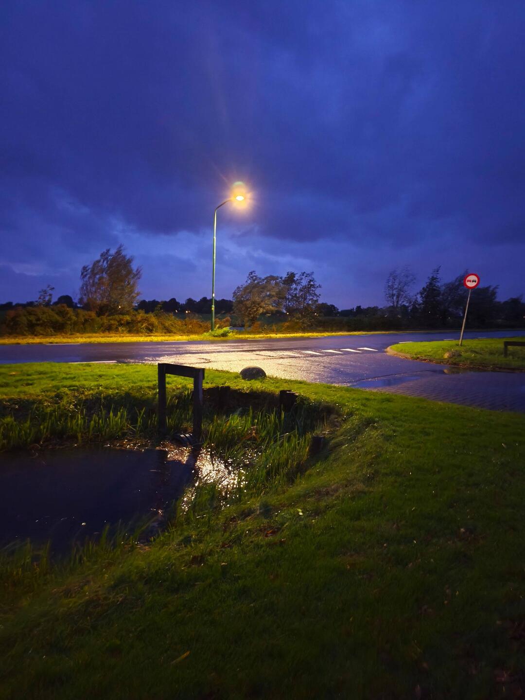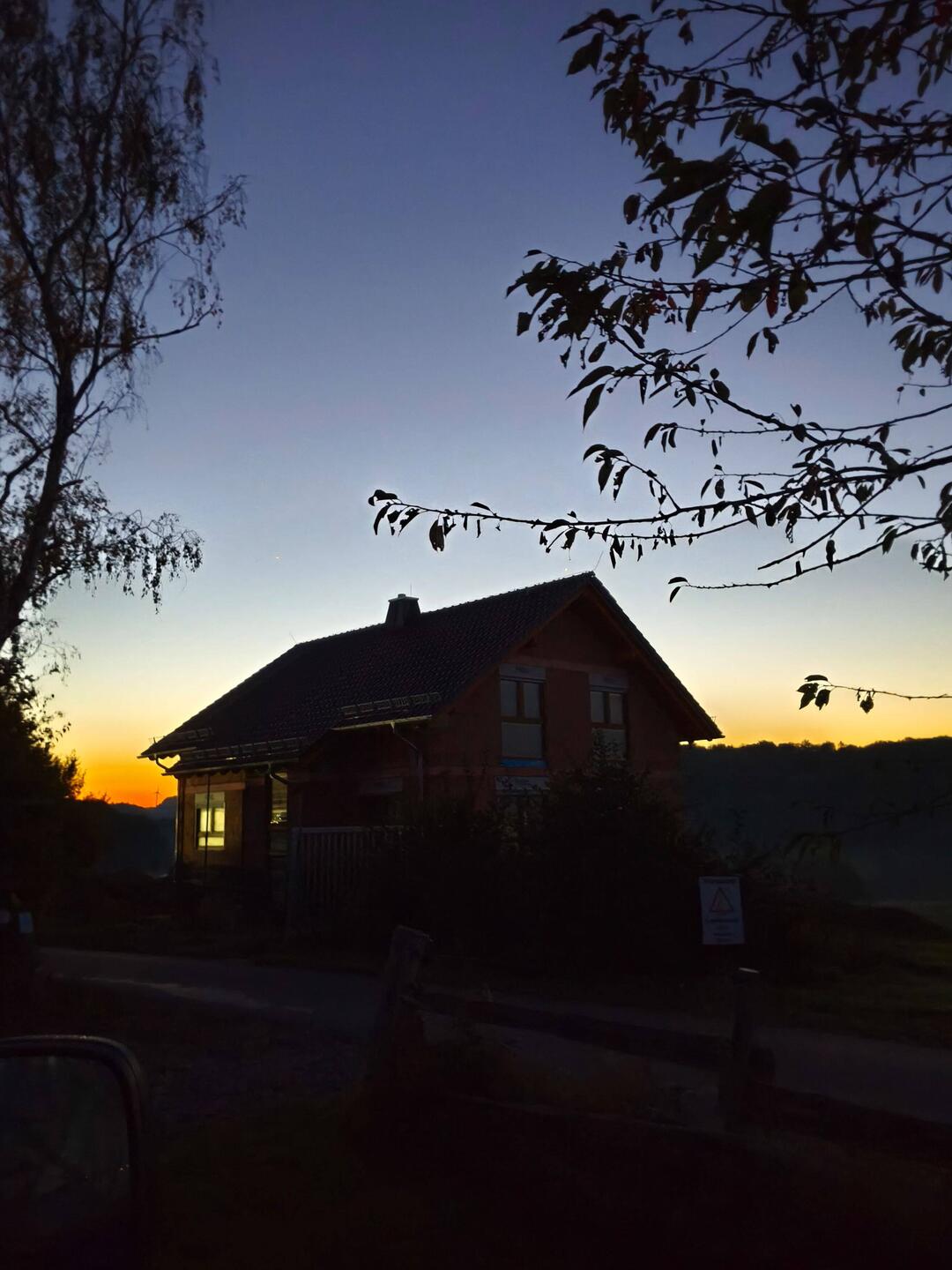 With this dark red sunrise, one might have suspected something bad was coming, but the weather actually held steady until the afternoon. It only started to rain heavily towards evening, and since nightfall came very early, the parking lot was naturally correspondingly dark.