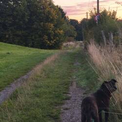 Den Nachmittag und Abend haben wir mit lieben Menschen verbracht, bei denen wir beide uns wohlfühlen. Gespräche, ein schöner Spaziergang über die Höhen. Der Junge guckt nach, ob andere Hunde um die Ecke kommen, Dominice versorgt Hilde, sodass ich mich auf den Weg konzentrieren kann.