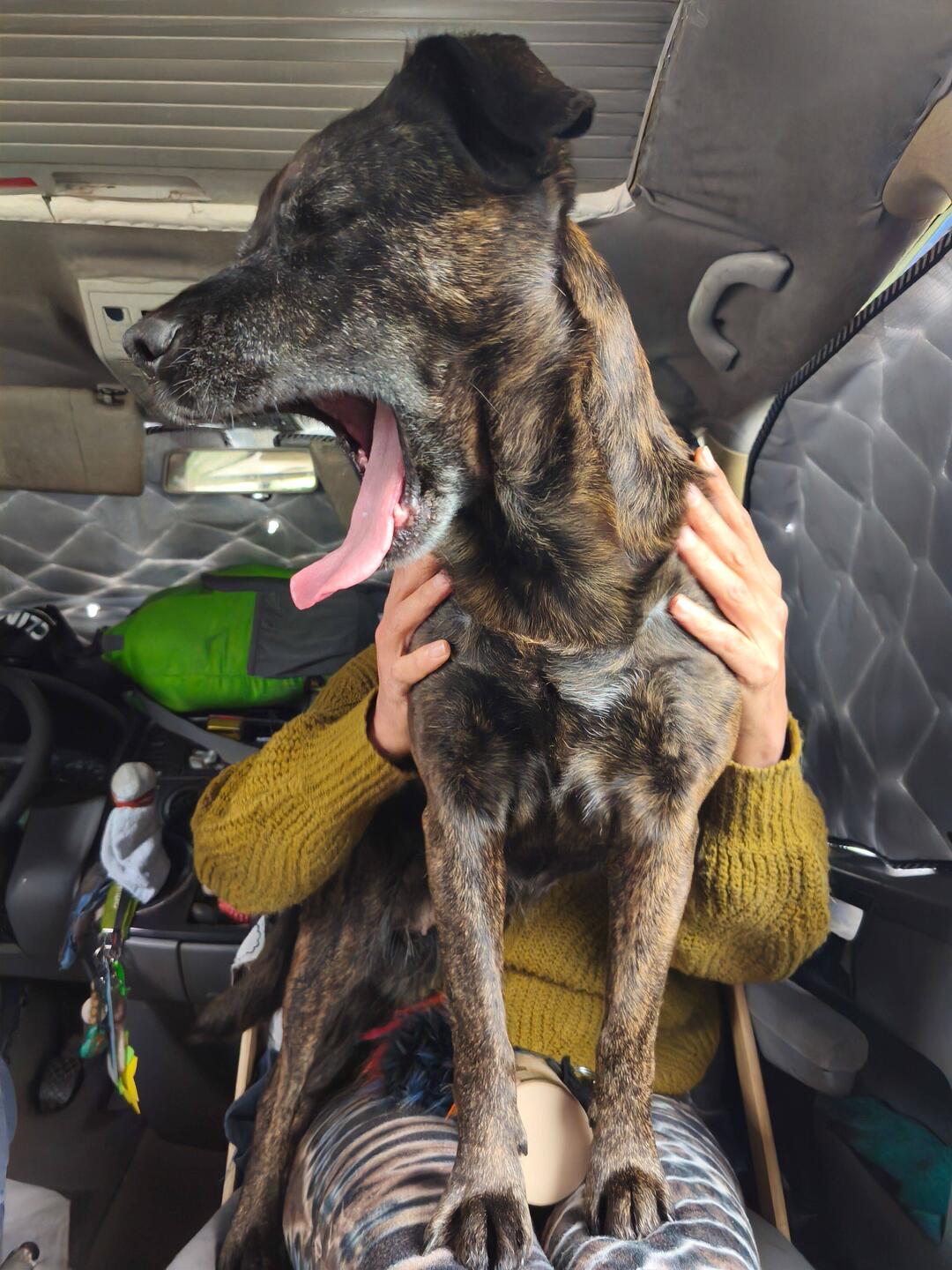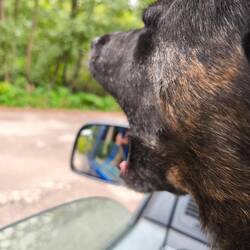 Kaum habe ich die Fenster verhängt, da macht Hilde hinten schon einen Katzenbuckel und will mit mir toben. Damit hatte sie vor einiger Zeit angefangen, und ich meine, es ist der Ausdruck ihres Glücksgefühls, dass wir wieder alleine unterwegs sind.