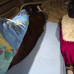 We arrive at our sleeping place early; the temperature is 18 degrees Celsius, the fan whispers a cool breeze. Hilde enjoys the silence and closeness; her fur is soft and warm again.もっと詳しく