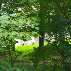 An der Weser finden wir eine Abholbank, und einen Feldweg mit Mäusen, Wiesen mit Hinweisen auf Kühe, die gerade abwesend sind. Und nicht fern der Sababurg ragt ein Baum einsam in die Höhe, während ein junger Wanderer Wasser trinkt und sich den Schweiß von der Stirn wischt.