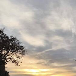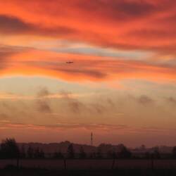 Bei diesem dunkelroten Sonnenaufgang hätte man schon Übles ahnen können, aber tatsächlich hielt sich das Wetter bis zum Nachmittag stabil. Erst gegen Abend beginnt es heftig zu regnen, und da die Nacht schon sehr früh kommt, ist der Parkplatz natürlich entsprechend dunkel.