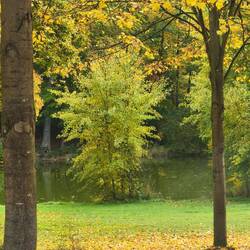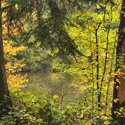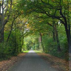 Hilde is so exhausted that she's desperate to have her dinner earlier and is circling me like a hungry lion. But first, we have to go out again to see what autumn has already done in the trees here.
