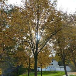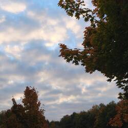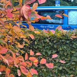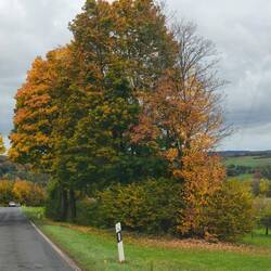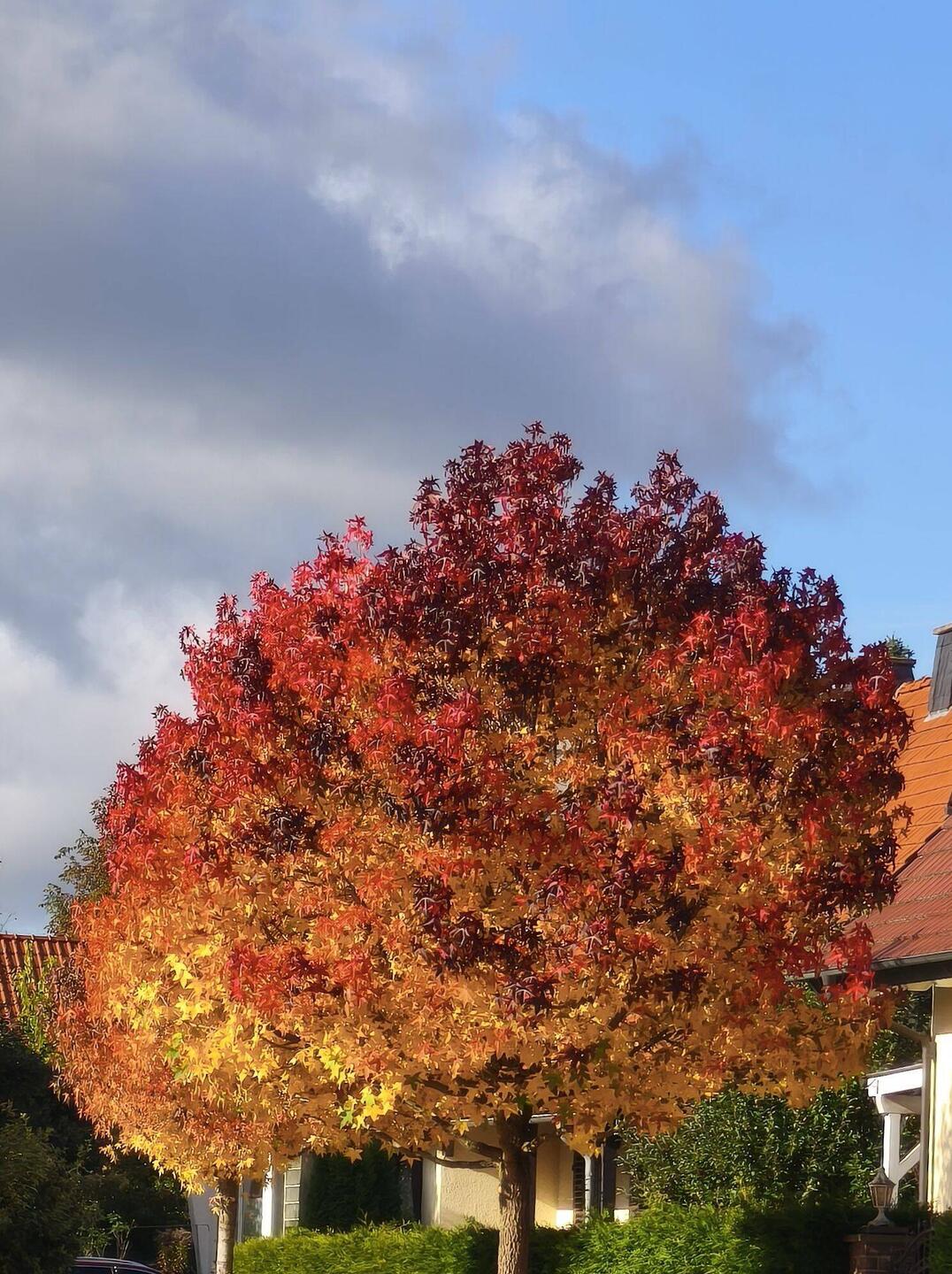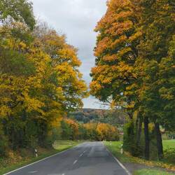 Heute ist Herbst, die Bäume blühen wunderschön, wir fahren beschwingt dahin, und ich könnte fast fröhlich vor mich hin trillern, wenn ich tatsächlich singen könnte.