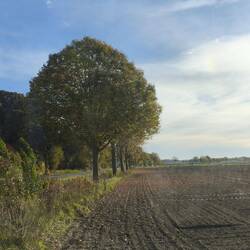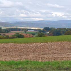 The next free parking spot isn't far away. In between, we take a walk along the edge of the forest while a farmer works his field, the view stretches far across the countryside to Hofgeismar.