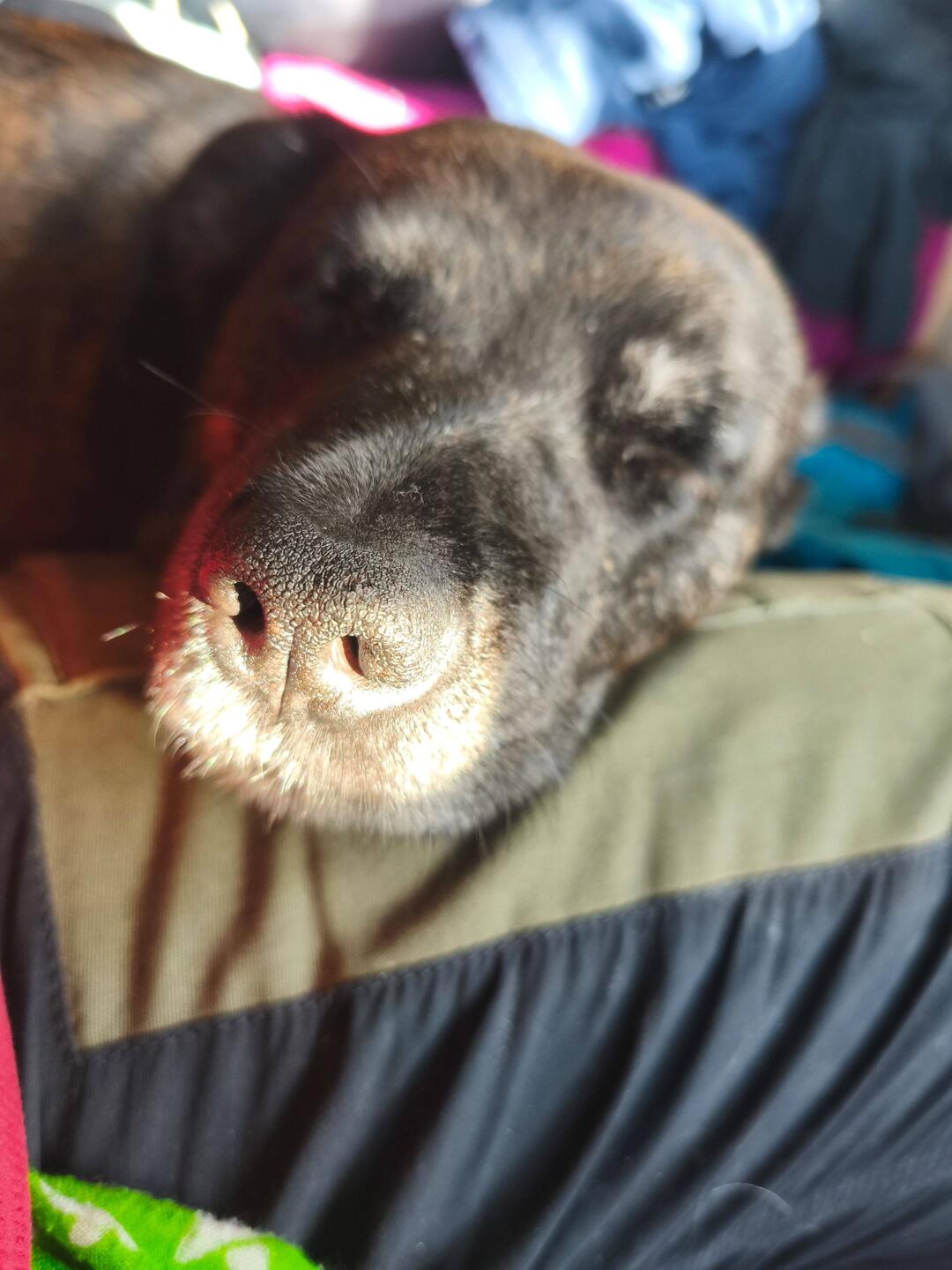 Früh kommen wir am Schlafplatz an, die Temperatur liegt bei achtzehn Grad, der Ventilator säuselt was von kühler Luft. Hilde genießt die Stille und Nähe, ihr Fell ist wieder weich und warm .