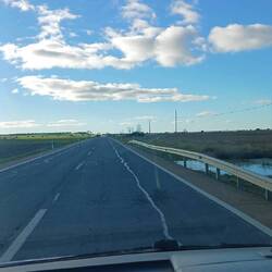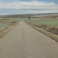 Die letzten Bilder vom Jakobsweg, der auf dem Weg nach Léon ewig lange neben der Straße herläuft, die flach geradeaus in den Horizont hinein zu fahren scheint.
