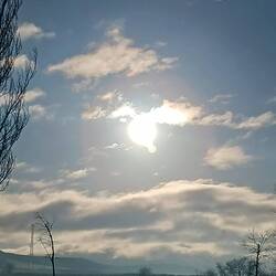 Hilde's Ohren fliegen beim Spaziergang fast weg. Ich habe Tee gekocht, wir hören dem Wind zu, die Temperatur liegt im unteren, einstelligen Bereich.