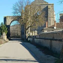 "Der Weg führt weiter zum Kloster San Anton de Castrojeriz. Das ehemalige Kloster des Antoniter-Ordens wurde im 12. Jahrhundert gegründet und geht auf französische Mönche zurück. Man kann noch die Mauern der Kirche und den früher überdachten Spitzbogen sehen, durch den damals wie heute der Jakobsweg führt. Im Sommer wird das Gemäuer als einfache Pilgerherberge genutzt.