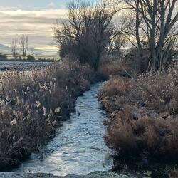 Später auf dem Feld im Sonnenschein könnte es auch Bodennebel sein, der über den gefrorenen Feldern wabert.
