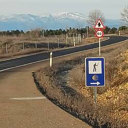Die N 120 führt nach Astorga und tatsächlich ist der Pilgerverkehr von Virgen del Camino an deutlich höher. Drei Zweierschaften im einer halben Stunde und die erste Pilgerin in Gegenrichtung.