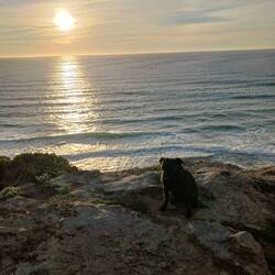 In den letzten Tagen bin ich nochmal durch die Orte gefahren, die mich umgeben. Vila do Bispo, die Strände in Castelejo und Cordoama. Auf einem Parkplatz in der Nähe der Markthalle treffe ich Sina's Familie @wander.horizons, von der ich mich verabschieden wollte. Uwe und Christine winken uns zu im Vorbeifahren, am Meer begegnet uns nochmal die Familie mit dem jungen, braunen Wuselhund, der sich vor Hilde fürchtet. Letztens hat mir noch der argentinische Pizzaverkäufer zugewinkt, den ich getroffen habe, als er vom Surfen den stürmischen Wellen entkommen war.