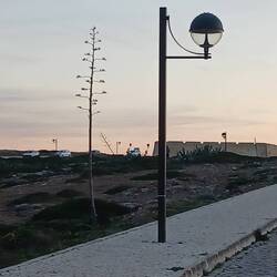 Heute sind wir schon im Dunklen rausgegangen, halb sieben in Portugal ist noch Nacht, die Laternen erhellen lediglich die gepflasterten Ŵege. Hilde möchte gerne in den schmalen Pfaden zwischen dem hohen Schilf schnüffeln, aber das müssen wir auf später verschieben. In der Nacht hat es so abgekühlt, dass die Gräser im Licht so glänzen, als hätten sie Besuch vom Väterchen Frost bekommen.