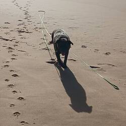Als die Beiden uns am nächsten Tag für einen weiteren Strandspaziergang abholen, ist das Interesse von Ivy an Hilde weitgehend erloschen, dafür versucht sie dieses Mal eigene Wege zu gehen, was ihre Besitzerin zu einigen ersteren Worten bringt. Auf diesem Spaziergang sind wir 90 Minuten unterwegs, und auch wenn ich später ein bisschen länger ausruhen muss, bin ich doch über die Erweiterung meiner Möglichkeiten sehr froh.