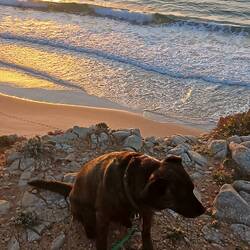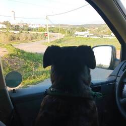 Wir sitzen gerade an der Straße von Sagres zum Leuchtturm, am Rand des Naturschutzgebietes. Wiederholt wacht Hilde aus ihrem tiefen Schlaf auf, weil der Wind, der durch die Tür kommt, einen Geruch mit sich bringt, den sie nicht zuordnen kann. Schnüffelnd reckt sie sich und lässt den Blick aus allen Fenstern übers Land gleiten, um einen Anhalt für ihren Verdacht zu bekommen.