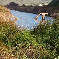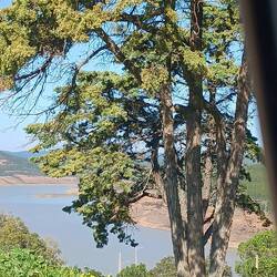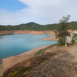 Nicht weit von der Stadt entfernt, aber doch in eine andere Welt tauchen wir ein, als wir über schmale Wege, durch kleine Dörfer mit viel Gemüse und Blumen hinauffahren, um an einem weitläufigen Gelände anzukommen, in dessen Tiefen sich Reste von Wasser in den Wolken spiegeln. Diese immense Wasserknappheit zu sehen und gleichzeitig daran zu denken, wie im Alentejo die Korkeichenwiesen in Seen verwandelt waren, ist schon erschreckend, weil keine große Entfernung zwischen beiden Orten liegt. Im Vergleich sind wir von dort etwa soweit entfernt wie Frankfurt von Freiburg ist, trotzdem ist es hier eben deutlich trockener, es kommt selten zu langen Regenschauern, und trotz der Wolken und dem wenigen Wind haben wir einen angenehmen Sonnentag.
