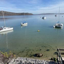 Rina, Karen and I sneaked off for a late breakfast down at the Langebaan Yacht Club, only a stoneLue lisää