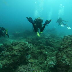 The rest of the dive was beautiful, schools of reef fish everywhere, turtles, rays and coral. Some shoals of game fish also passed by and no large critters! One hour later back onto the duck and back at the camp by 10:30.