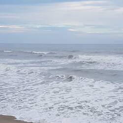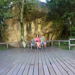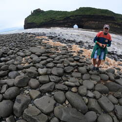 Although cloudy overhead and very little sun, no rain. We had a beautiful walk down to the rocky 'beach' through a Coastal Forest directly to, in front of the 'Hole'. Not quite high tide but still with breakers crashing through. A walk up the left hill and cliff face, was an awesome view again of the whole world!