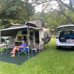 We woke too late and decided to travel to Lake St Lucia and thankfully we did. Given the holiday, it was very quiet on the roads but when we checked into Isimangaliso Wetlands campsite here and fully unpacked, only to find that our Electricity point did not work. Full credit to the staff they did get things going quite quickly 🤜