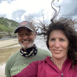 All night pounding of surf and sporadic passing showers made for good sleeping! We woke to seeping clay underfoot and continuous showers throughout the morning. Breakfast and coffee in bed until whatever time was called for. In the morning, rain showers were not as heavy as predicted but by the afternoon we experienced some drenching rain, and then a milder afternoon to sunset. Still very cold, like under the Duvet cold, my domesticated upbringing was tested, and I spent time reading my Roald Dahl book. After many paragraphs being read several times, to keep me awake I was tasked with untangling Karen’s ball of wool. Even if I tried my best (or worst) there is no way I could get it so knotted, in the first place!