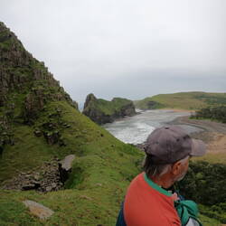On our return at around midday, Karen made us a delicious cheese and egg toasted sandwich, right out of the Top-drawer! After a cup of coffee we took an amble down to the WC beach, but as we arrived the wind picked up, accompanied by some light showers. Incredibly here on the Wild Coast, how fully grown-to-overweight cows graze right on the cliff-edge of a precipice, a couple of hundred meters above the crashing sea!