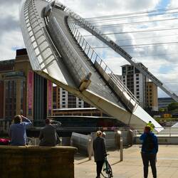 Von der Castle sind wir runter ans Ufer des Tyne gelaufen. Der Fluss ist bekannt für seine vielen Brücken, unter anderem der Millenium Bridge. Wir konnten sogar sehen wie sie sich erhob, damit einLes mer