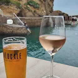 Det er en havneby med tilhørende spisesteder langs kaj kanten, vi sad og fulgte med i om en mand med fiskestang fik bid. Hyggeligt!